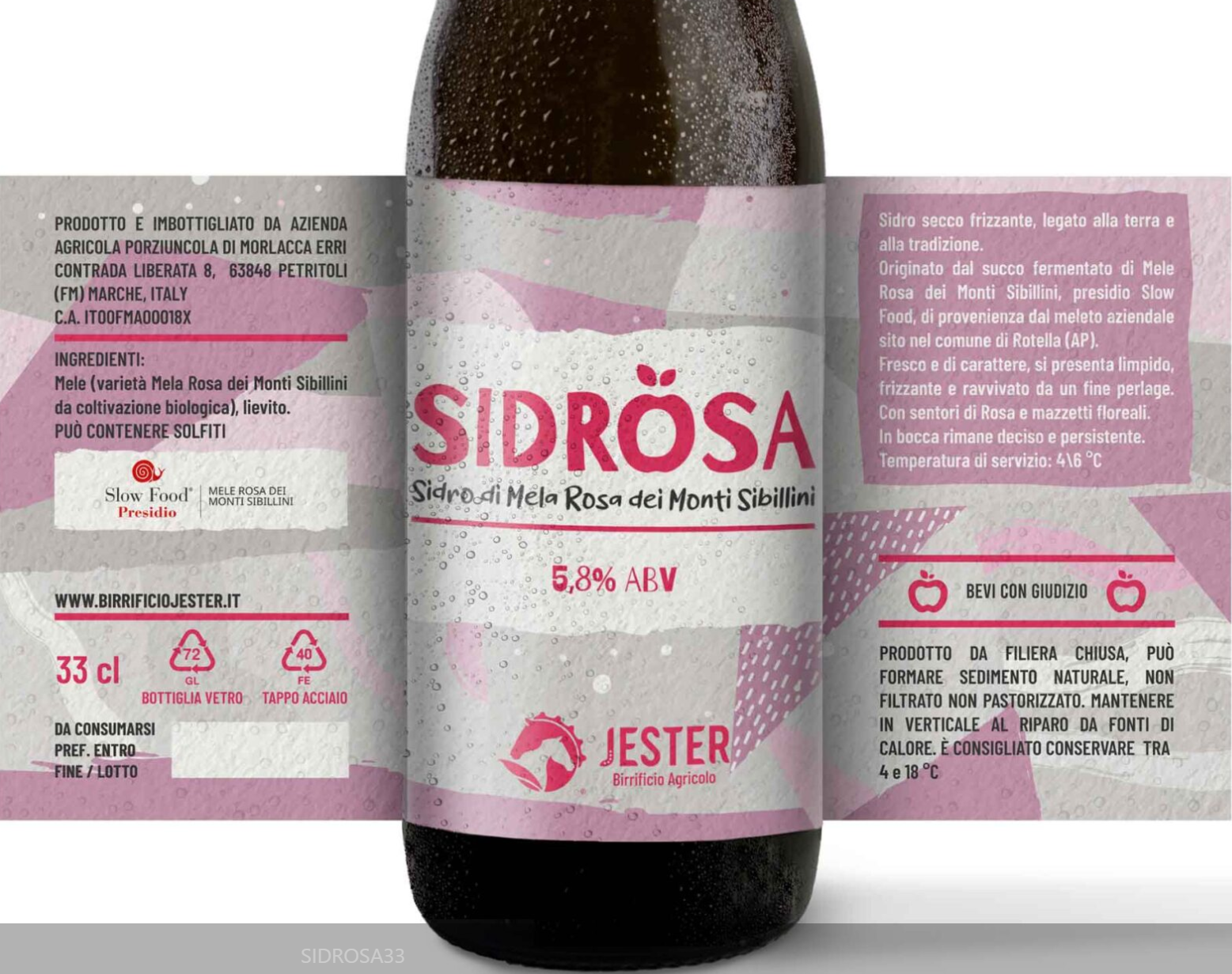 Il sidro di mela rosa artigianale del Birrificio Agricolo Jester nasce dalla riscoperta di un frutto antico e straordinario: la mela rosa dei Monti Sibillini. Questa varietà, coltivata sulle colline marchigiane, si distingue per il suo aroma intenso e la polpa compatta, ideale per dar vita a una bevanda frizzante fermentata dal carattere autentico. Il sidro viene prodotto attraverso una fermentazione spontanea, senza aggiunta di lieviti selezionati, con rifermentazione in bottiglia. Non è filtrato né pastorizzato, così da mantenere intatte le sue proprietà organolettiche.