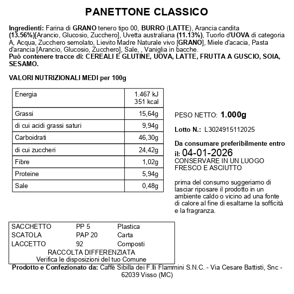 Panettone classico come da tradizione milanese, senza glassa, dal gusto inconfondibile, dove i profumi di burro e vaniglia Bourbon del Madagascar, si sposano con morbidissimi cubetti delle nostre arance candite e uvetta australiana di primissima scelta, creando un equilibrio pertetto tra tradizione e bontà autentica.