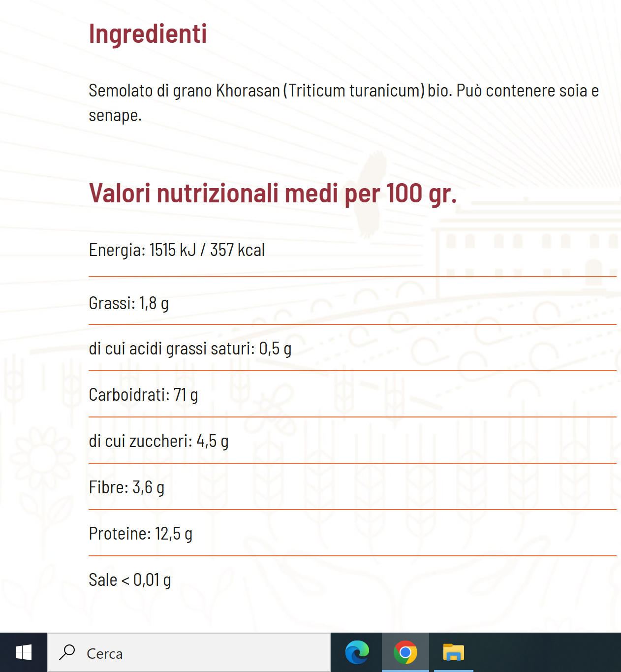 Valori nutrizionali per 100g